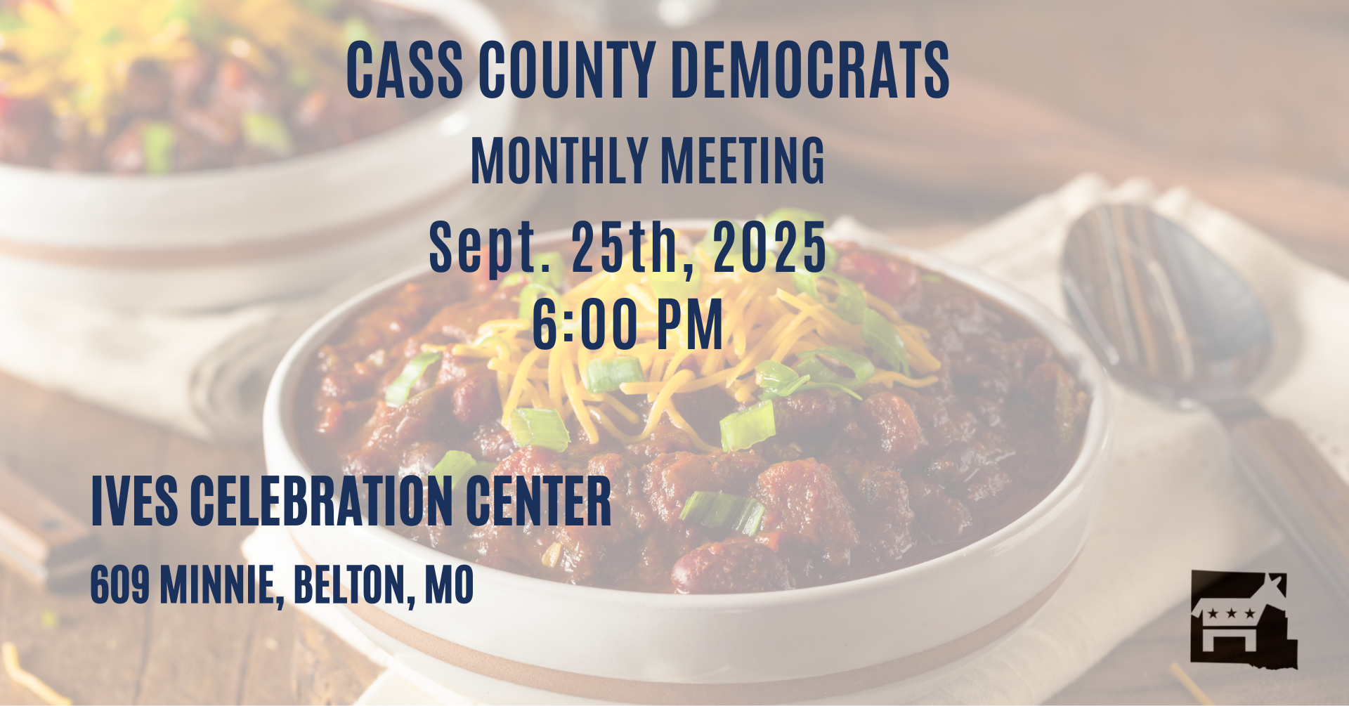 We'll treat you to the award-winning chili, prepared by our Cass Dems!